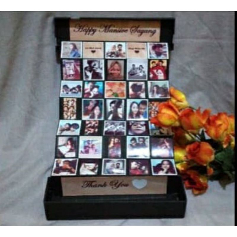 Semua ukuran bisa request dari warna box, tata letak foto sampai dengan ucapan di dalam box