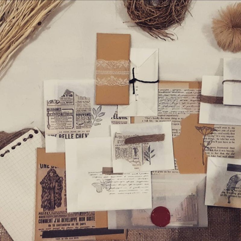 It consists of A LOT OF STICKERS, notebook, hang tag, scrap papers, masking tape, yarn, bookmarks, paper bundle, and many more!