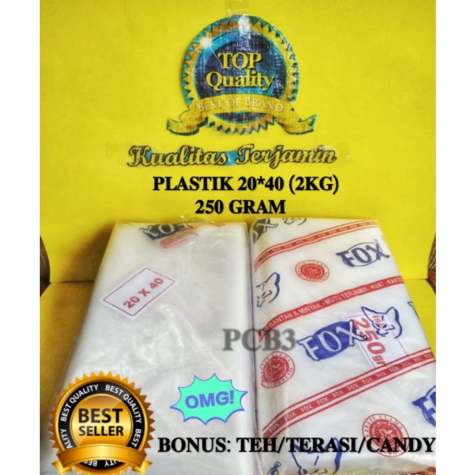 Kantong Plastik dengan merk FOX SUPER, dengan bahan PE, bagus serta tidak mudah robek, dan pasti nya foodgrade