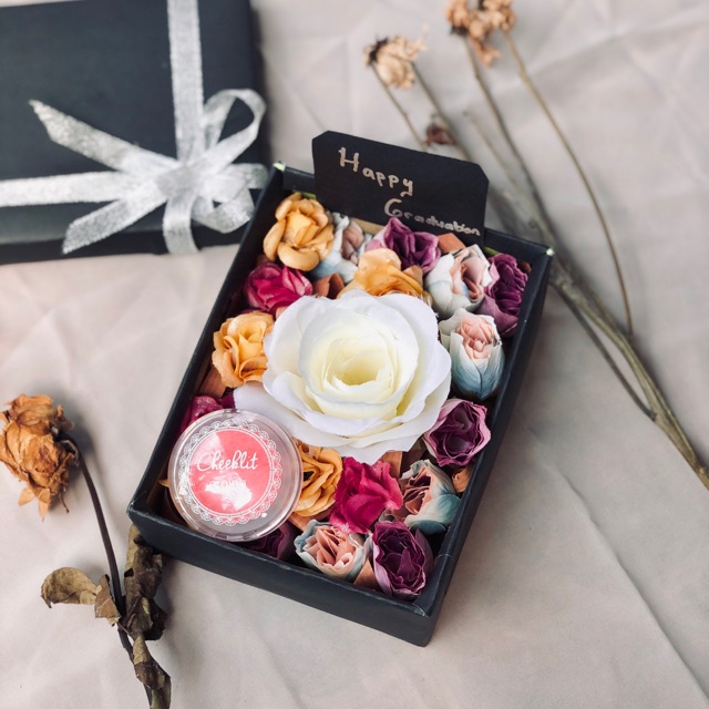Gift box flower dengan skin care/makeup/ foto polaroid. Produk isi gift box bisa request yaa.