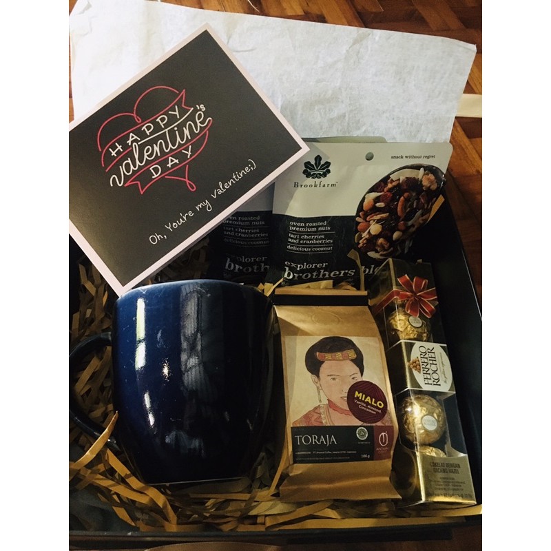 Valentine Gift Box For Him dikemas dalam box hitam eksklusif dengan pita dan di isi dengan barang2 pilihan dan berkualitas, silahkan di order ya ..