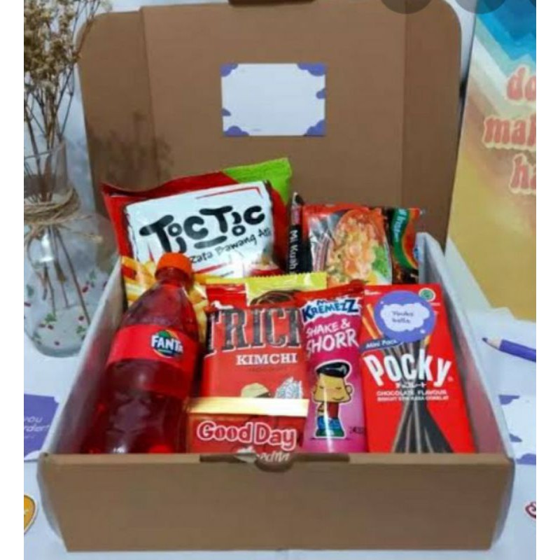 Jual gift box snack dengan bermacam snack dan snack juga bisa menentukan sesuai keinginan dan dijamin harga nya terjangkau.Mulai dari 10Rb udah dapat macam² snack