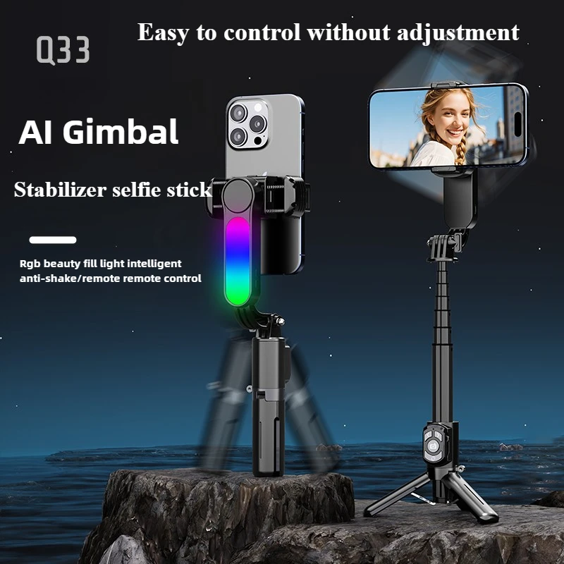 Gimbal Stabilizer 1-Axis AI Automatic Balancing Selfie Stick Stabilizer with Fill Light & Remote Compatible with IPhone/Android