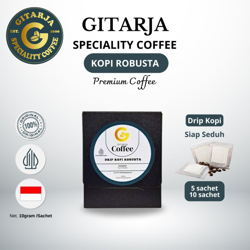 Gitarja Coffee - Drip Kopi Java Robusta premium dengan kemasan 5 sachet dan 10 sachet.