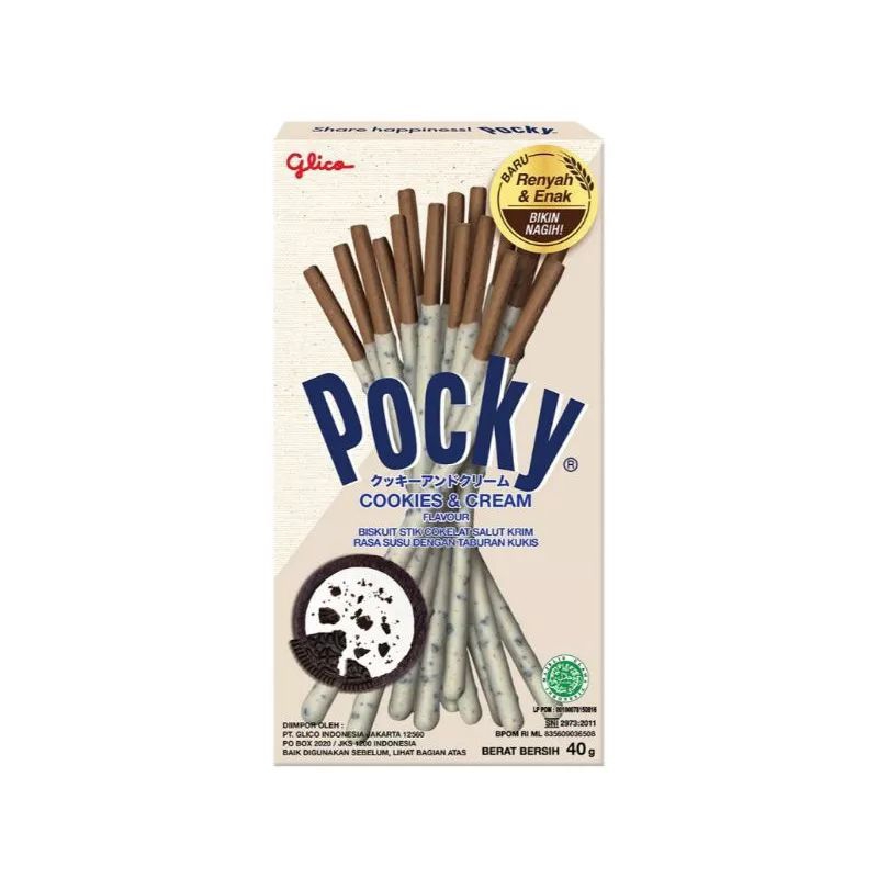 Nikmatnya kelezatan Pocky Chocolate, Biskuit stik berlapis coklat tebal yang enak, praktis, dan ngga berantakan. Terbuat dari bahan pilihan dengan kualitas tinggi, menciptakan biskuit renyah tanpa remah dan rasa coklat lezat dan manisnya pas.