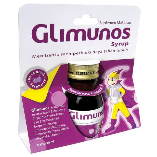 Glimunos adalah kombinasi lengkap imunostimulan yang terdiri dari BLACK ELDERBERRY, PHYLANTUS NIRURI, dan ZINC PICOLINATE yang dapat meningkatkan daya tahan tubuh, mempercepat masa penyembuhan dan mengurangi beratnya gejala penyakit. Hadir dalam rasa raspberry yang disuka anak-anak.