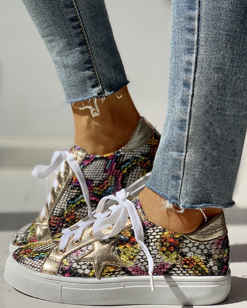 Glitter Lace-Up Star Pattern Casual Sneakers, Multicolor