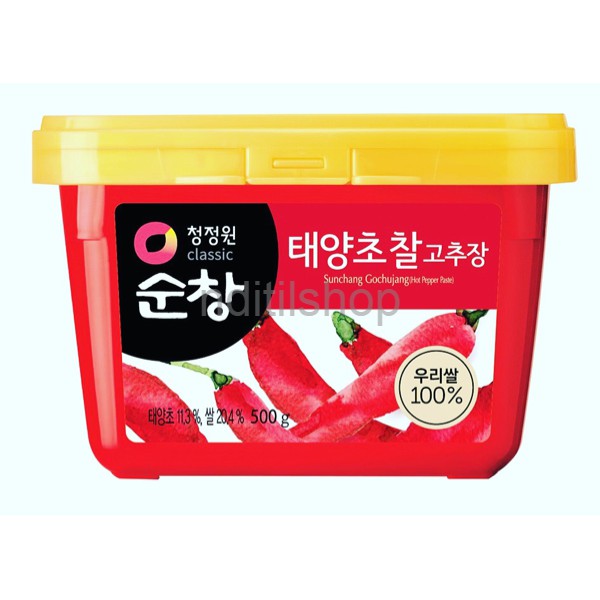 Gochujang 500g br/ Brand: Haepyo. br/ Tergantung stok br/ br/ Saus sambal khas Korea untuk membuat aneka masakan khas Korea; Bibimbap, tteokboki dll. br/ br/ Gocujang yg umum dipasarkan di Indonesia adalah dg merk Chung jung one, haecandle, haepyo dan Sempio. Untuk rasa kurang lebihnya sama. br/ Perhatian!!: Produk Gochujang umumnya mengandung alkohol (hasil fermentasi).