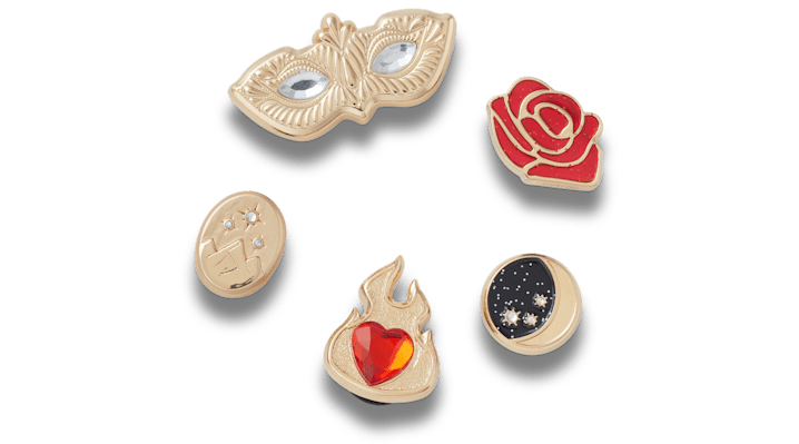 Pop some personality into your shoes with these Gold Magic 5 Pack Jibbitz™ charms. They’re the perfect addition to your favorite pairs of clogs, slides, and more.Not a toy. Not intended for children under 3 years of age.