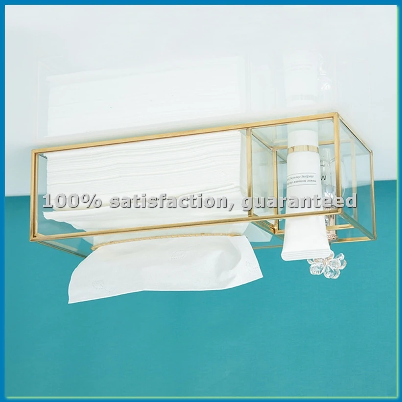 Gold Tissue Box Rectangular Clear Glass Paper Tissue Box for Home Tissue Dispenser Geometric Glass Tissue Box-AT35