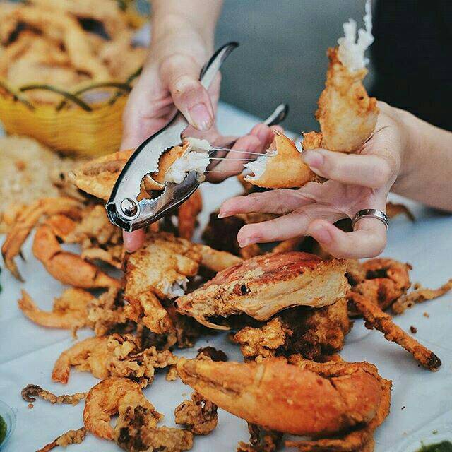 2 ekor kepiting goreng tepung + udang goreng tepung + cumi goreng tepung + sambel cuka