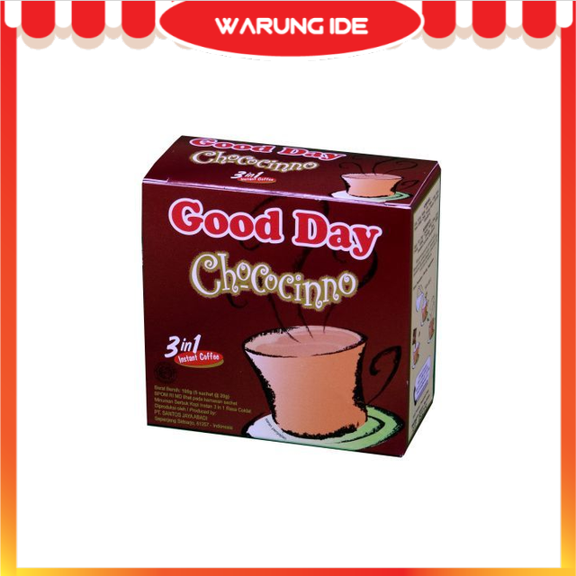 Jangan lupa Follow Toko & Like Produk kita Untuk mendapatkan Diskon dan Info Update nya Good Day Chococinno 20gr x 5 merupakan kopi bubuk yang terbuat dari biji kopi pilihan. Varian ini menghasilkan kopi yang harum dan lebih enak. Tuangkan satu sendok makan ke dalam cangkir kemudian seduh dengan air mendidih 200 ml dan kopi ini siap disajikan. JANGAN LUPA BACA RULES TOKO DI BANNER YA SEBELUM ORDER