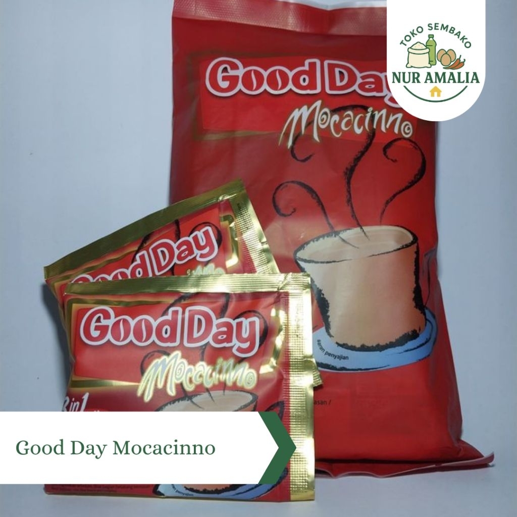 Good Day Mocacinno Kopi Instant 3 in 1 lengkap dengan rasa Mocacinno Cocok untukmu menemani gaulmu agar lebih penuh rasa