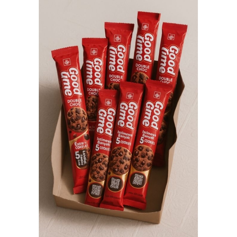 Good Time double Chocochips Cookies merupakan snack biskuit persembahan GOOD TIME yang sangat renyah dan enak. Biskuit ini bertabur coklat lezat yang menambah kenikmatan setiap gigitanya. Terbuat dengan bahan berkualitas dan melalui proses dengan teknologi tinggi sehingga aman di kosumsi dan hiegienis. Sangat cocok menjadi teman disaat bersantai