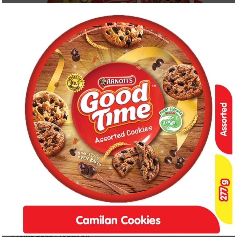 Lengkapi hari spesial Anda dengan Good Time Assorted Cookies. Camilan biskuit persembahan Good Time ini hadir untuk Anda, para penggemar chocochip. Dibuat dari bahan-bahan pilihan yang diolah secara seksama dan higienis hingga dihasilkan beragam varian biskuit chocochip yang manis, renyah, dan lezat. Cocok dinikmati saat bersantai sambil ditemani teh ataupun dijadikan bingkisan hari raya untuk kerabat. Camilan chocochip ini tersedia dalam kemasan kaleng yang mampu menjaga kerenyahan biskuit lebih lama. Dapatkan segera Good Time Assorted Cookies dan rasakan kelezatan di setiap variannya.