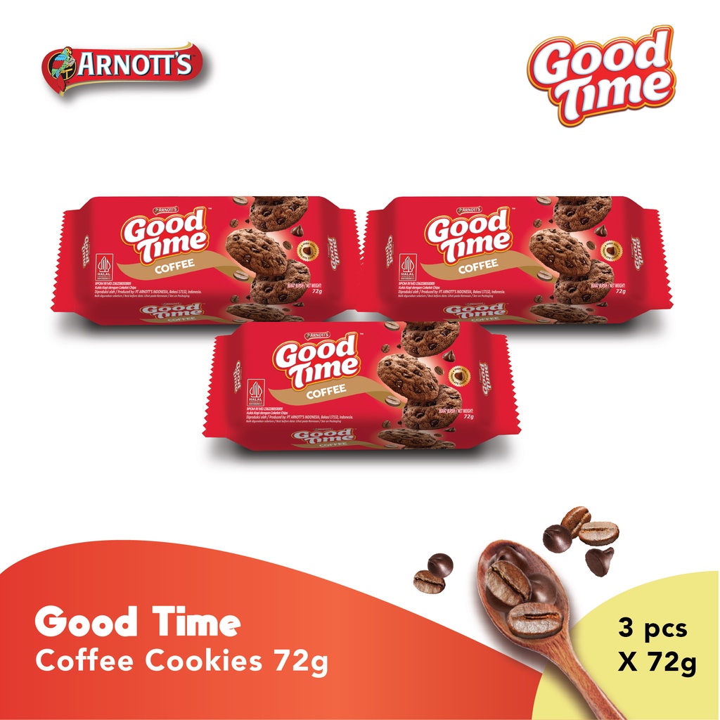 Biskuit renyah rasa kopi bertabur chococips lezat. Terbuat dari bahan berkualitas dan rasa yang lezat sehingga disukai jutaan keluarga di Indonesia. Hadirkan kebahagiaan bagi momen bersama keluarga anda dengan biskuit Good Time favorit keluarga.