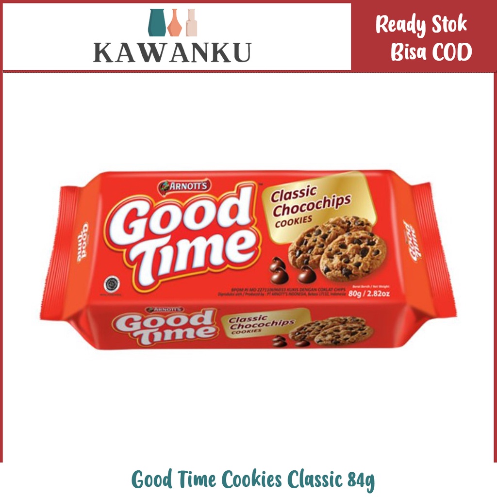 Kue kering adalah salah satu pilihan camilan keluarga Indonesia dalam berbagai kesempatan. Piknik, menonton TV, bermain musik, dan bermain di halaman rumah seringkali dilewati sambil menikmati kue kering yang renyah dan lezat. Good Time Cookies dari Arnott's adalah salah satu kue kering yang disukai oleh keluarga Indonesia sejak lama. Cookies yang unik dengan choco chips telah menjadi pilihan penambah keakraban sejak lama. Good Time Cookies Classic 84gr adalah varian Good Time Cookies rasa coklat klasik. Kerenyahan kue kering berkualitas ditambah dengan taburan choco chips rasa coklat yang pekat akan memberikan pengalaman makan yang istimewa untuk Anda dan keluarga. Perpaduan renyah dan manisnya menjadikan Good Time Cookies Classic pilihan yang tepat dalam berbagai kesempatan. Kue cookies ini juga dapat menjadi teman minum kopi, teh, dan susu kesukaan Anda. Rasakan rasa coklat klasiknya dan warnai hari-hari Anda dan keluarga dengan Good Time Cookies Classic.