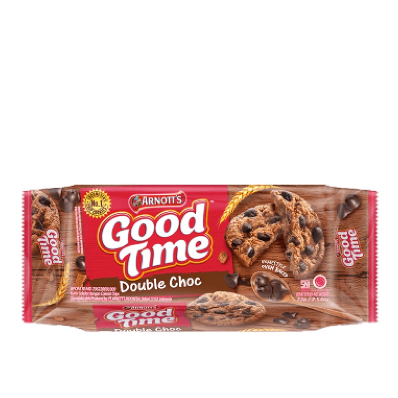 Good Time Double Choc Chocochips Cookies 72gr merupakan snack biskuit persembahan GOOD TIME yang sangat renyah dan enak. Biskuit coklat yang ditaburi oleh coklat lezat yang menambah kenikmatan setiap gigitanya. Terbuat dengan bahan berkualitas dan melalui proses dengan teknologi tinggi sehingga aman di kosumsi dan hiegienis. Sangat cocok menjadi teman disaat bersantai. BPOM MD 236228001009 Shelf Life 12 months