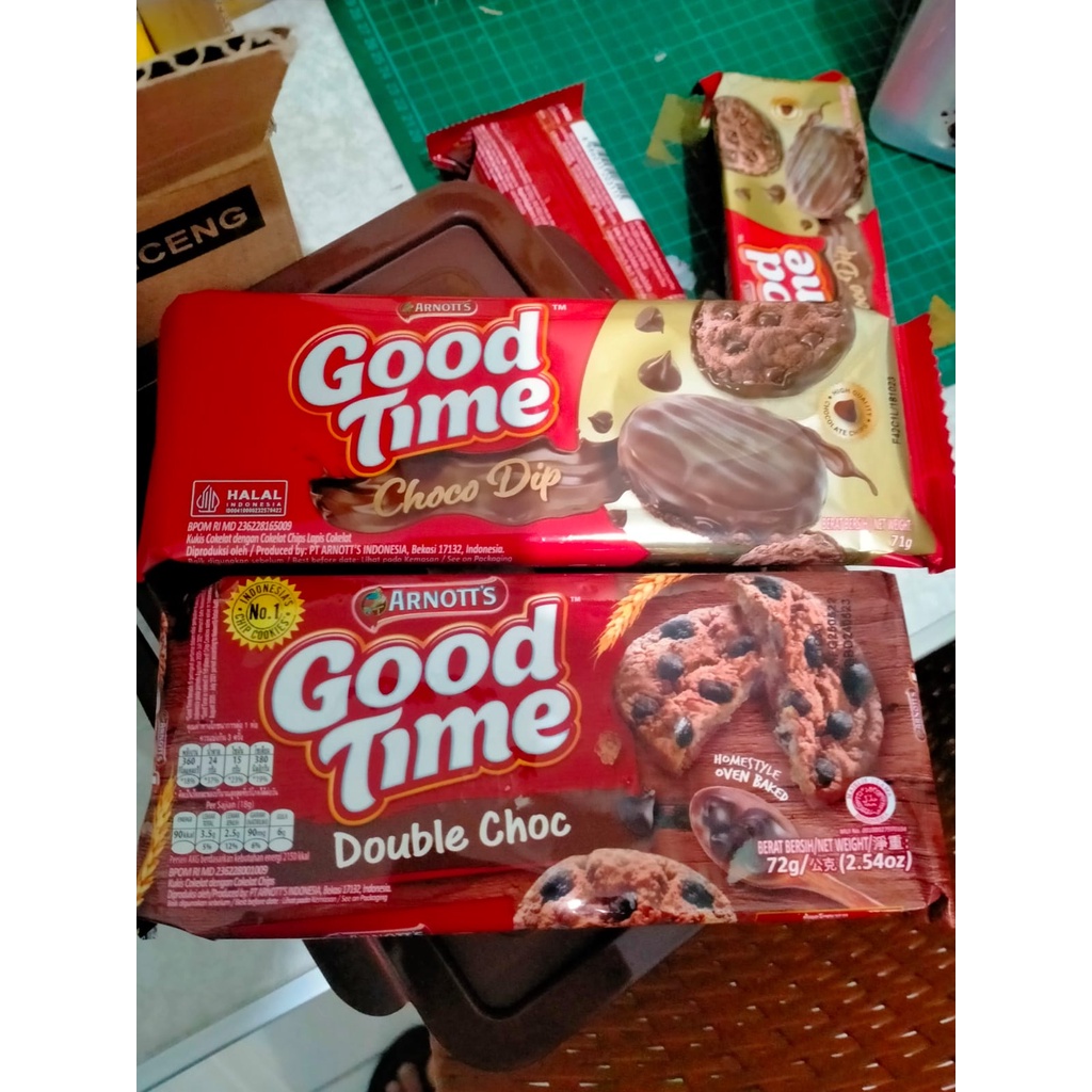 Good time Double Chocochip dan Choco Dip kukis renyah dengan double chocochip yang enak.