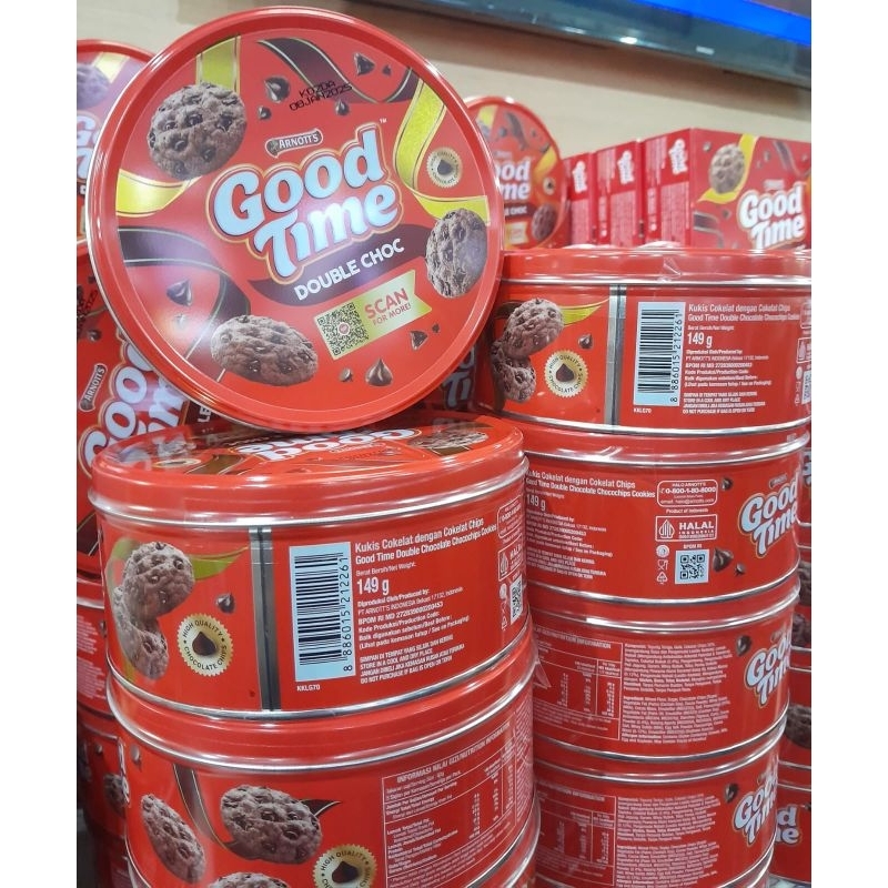 Berbagai varian Good Time Cookies dalam satu kaleng. Kerenyahan kue kering yang berkualitas ditambah dengan taburan choco chips rasa coklat yang pekat akan memberikan pengalaman makan yang istimewa untuk Anda dan keluarga. Beragamnya pilihan varian kue kering dengan choco cips lezat dalam satu kaleng Good Time Cookies Double Choc 149g menjadikannya pilihan yang tepat dalam berbagai kesempatan. Kue cookies ini juga dapat menjadi teman minum kopi, teh, dan susu kesukaan Anda. Pilih sendiri varian kesukaan Anda dan warnai hari-hari dengan Good Time Cookies Double Choc 149 g.