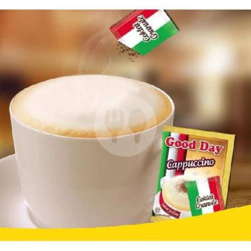 Good Day Cappuccino adalah kopi instan yang merupakan perpaduan kopi, gula, krim nabati, coklat bubuk, perasa cappuccino, dan coklat granule. Good Day Cappuccino memiliki busa yang tebal dan creamy.