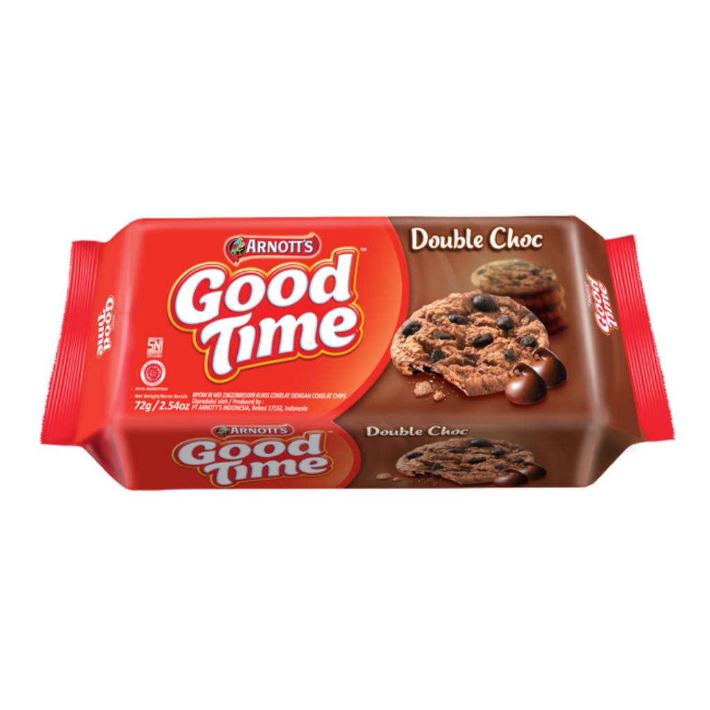 Good time all var 72 gr Arnott's Good Time dengan varian: Double Choc, Classic chochip Berat :72gr BPOM MD 236228001009 MD 236228002009 >>>>> NOTE PEMBELI
