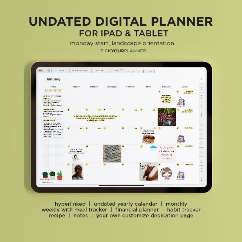 - Planner ini dapat digunakan di note-taking app (seperti GoodNotes, Onenote) dan di iPad / Tablet dengan Apple Pencil / Stylus.
