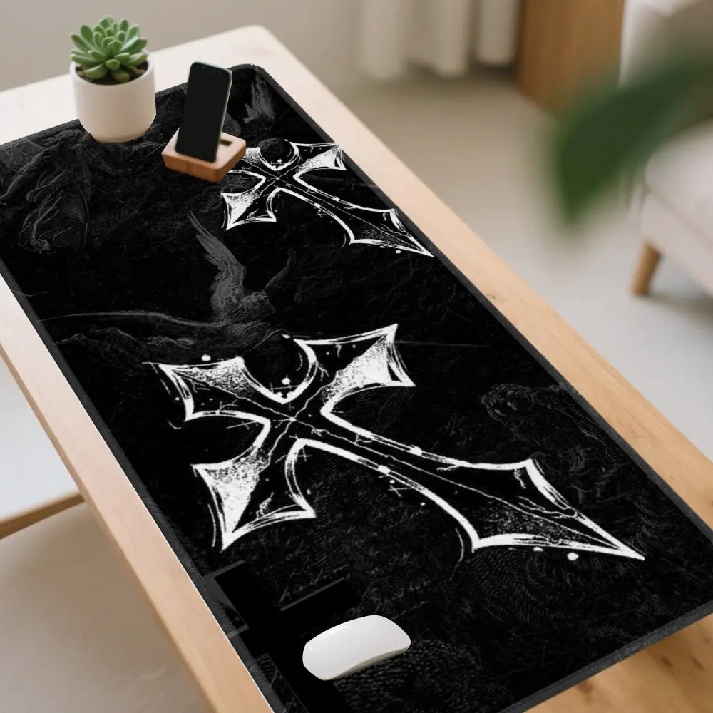 Gothic Cross Design Extended Gaming Mouse Pad Aesthetic Desktop Mat Durable Rubber Base Office Mousepad