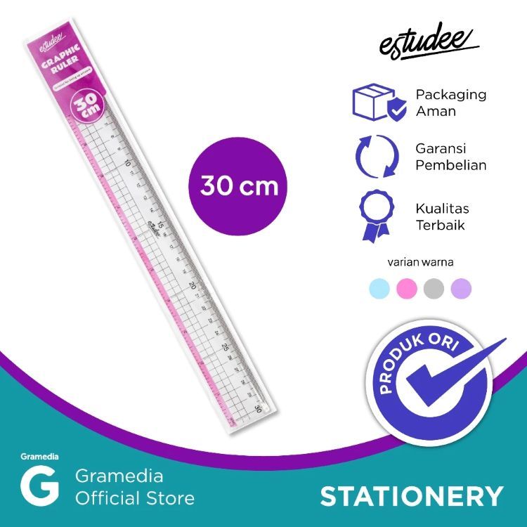 Gramedia - ESTUDEE GRAPHIC RULER 30CM BLACK ES-R030