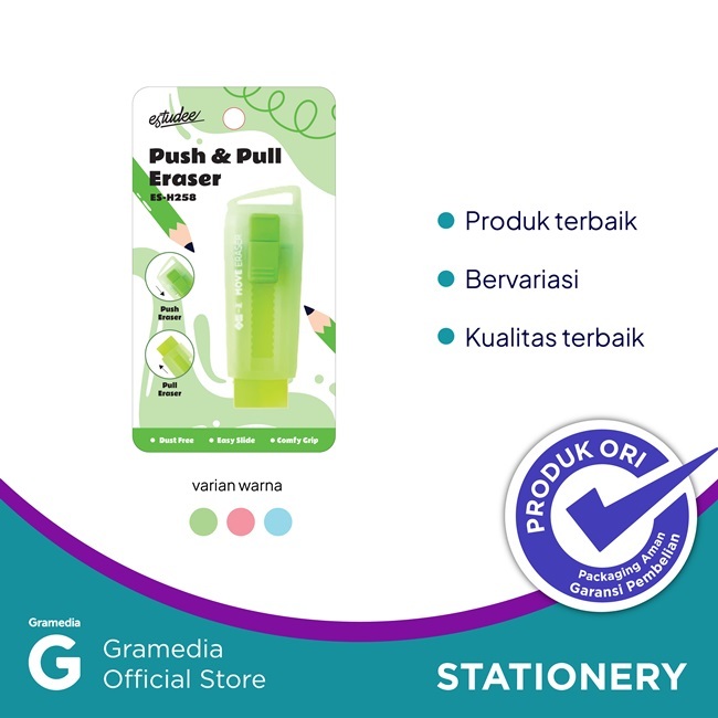Estudee Push & Pull Eraser Es-H258 adalah pilihan yang tepat bagi pelajar, seniman, atau siapa saja yang membutuhkan penghapus yang handal dan mudah digunakan.