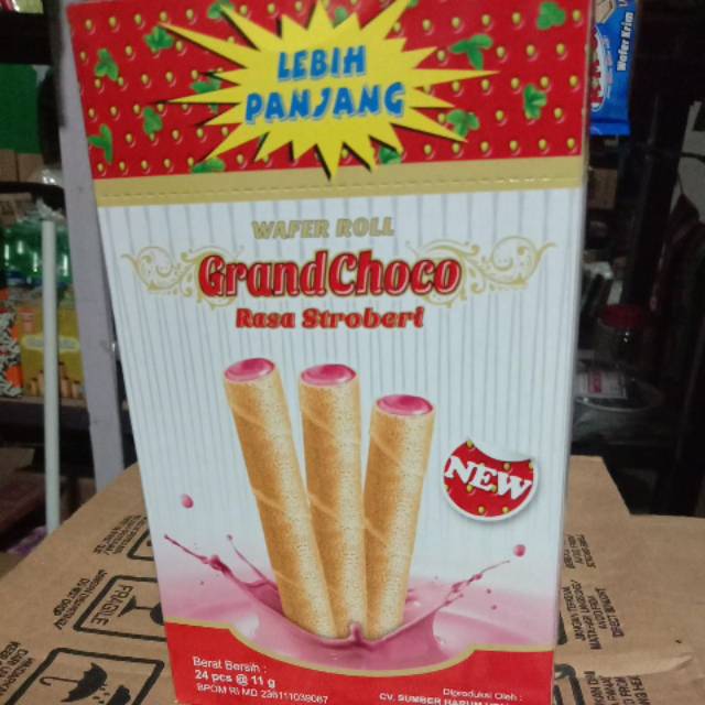 Grandchoco wafer roll rasa strobery isi 24pcs