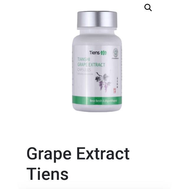 Grape extract tiens dibuat dengan bahan dasar resveratrol, Resveratrol memiliki khasiat untuk menurunkan viskositas darah (kekentalan darah), mencegah penyakit aterosklerosis, memperbaiki penyakit pembuluh darah jantung, melawan oksidasi, melawan penuaan, meningkatkan imunitas dan mencegah timbulnya tumor.