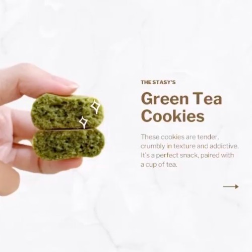 Made with Japanese matcha. Tender, crumbly in texture, addictive with an earthy flavor, and not overly sweet. Perfectly paired with your morning cup of tea or as a snack during the day.