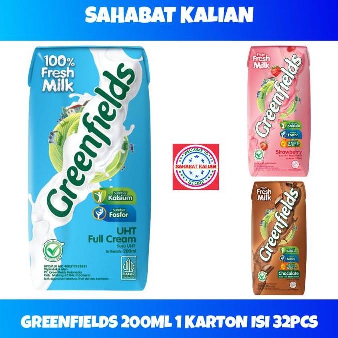 GREENFIELDS UHT merupakan susu cair dari Greenfields yang diformulasi siap minum dengan rasa full cream, stroberi, cokelat yang nikmat untuk memenuhi kebutuhan Kalsium harian Anda dan keluarga.
