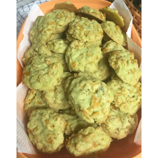 Kue kering yg terbuat dr campuran cornflakes dan bubuk greentea dijamin manja dilidah, buat pencinta greentea cocok nih dijadiin cemilan ataupun pelengkap di hari raya.
