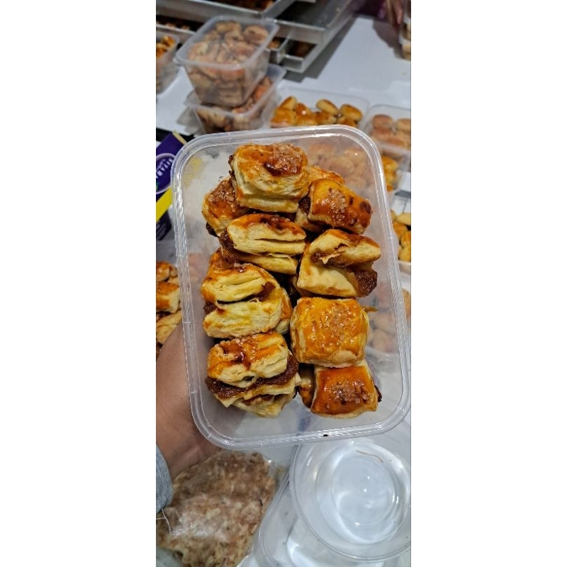 Grem terbuat dr kulit pastry yang dalamnya di balut dengan isian selai nanas & kacang yg super legit juga gurih.