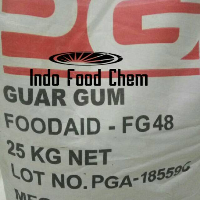 dapat membantu mengentalkan, mengikat, dan menstabilkan bahan dalam makanan. Dalam makanan, tepung guargum dapat menarik dan mengikat air sehingga terjadi proses pengentalan makanan dan menguraikan serat pada waktu yang bersamaan. Guar gum dapat digunakan dalam resep tepung putih bagi mereka dengan alergi gluten. Selain itu guar gum juga dapat digunakan sebagai pengganti tepung dan lemak dalam resep untuk membantu mengurangi kadar kalori pada makanan namun tetap mempertahankan makanan sesuai dengan ketebalan dan tekstur yang diinginkan. Guar gum mengandung, setidaknya hanya 1 kalori per gram dibandingkan dengan tepung 4 kalori per gram, dan lemak pada 9 kalori per gram.
