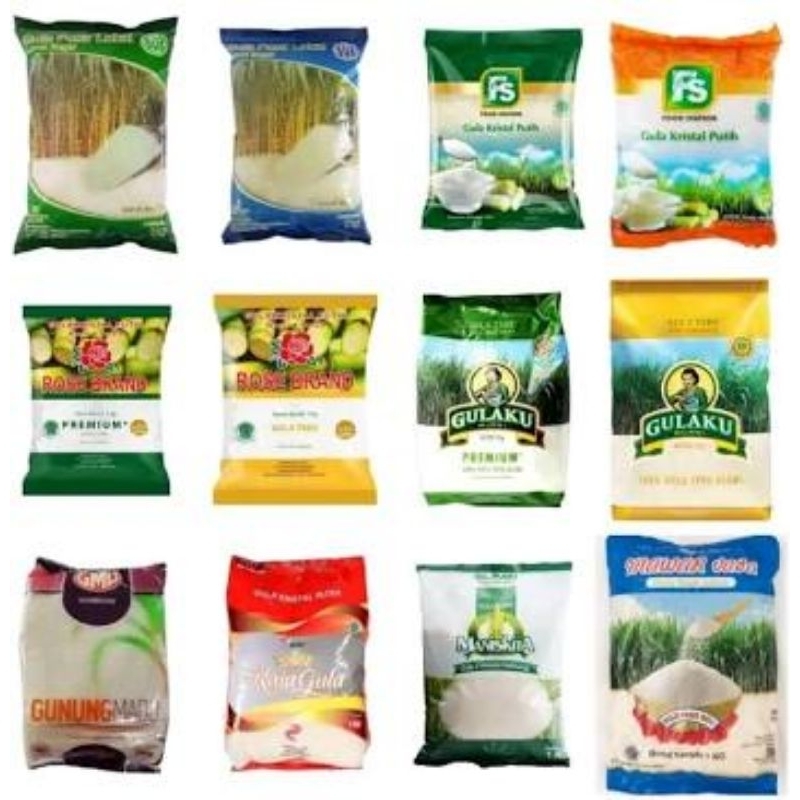 Gula pasir kemasan 1kg merk random. Dikirim sesuai stock yang ada