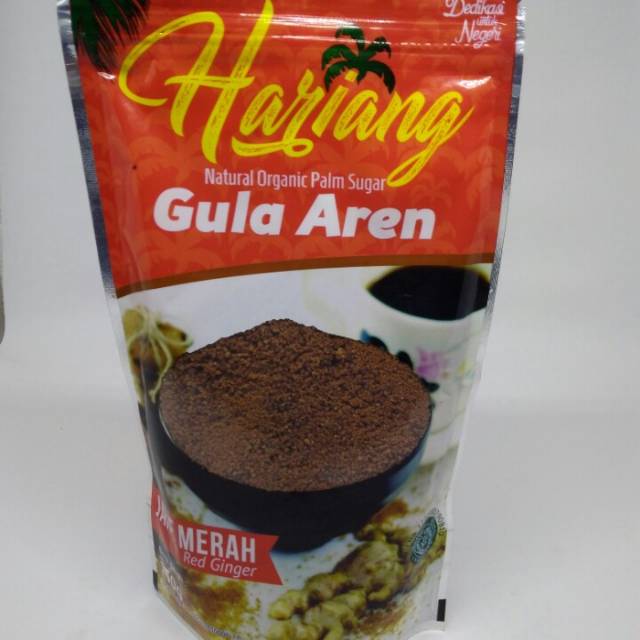 Gula aren bubuk dengan campuran jahe merah yang telah di tumbuk dan di proses menggunakan mesin oven sehingga menghasilkan gula bubuk dan jahe merah bubuk yang siap dijadikan minuman hangat dan memingkatkan daya tahan tubuh.