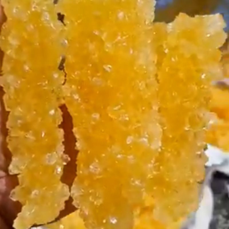 Gula batu berwarna kuning, gula tidak menggunakan bahan kimia. Gula lebih berkualitas, sedikit aja dikonsumsi rasa sudah sangat manis.