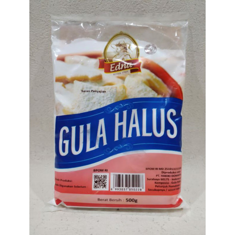 Gula halus edna yang terbuat dari 100% gula murni, dapat di gunakan untuk bahan campuran adonan kue atau pun digunakan langsung untuk topping.