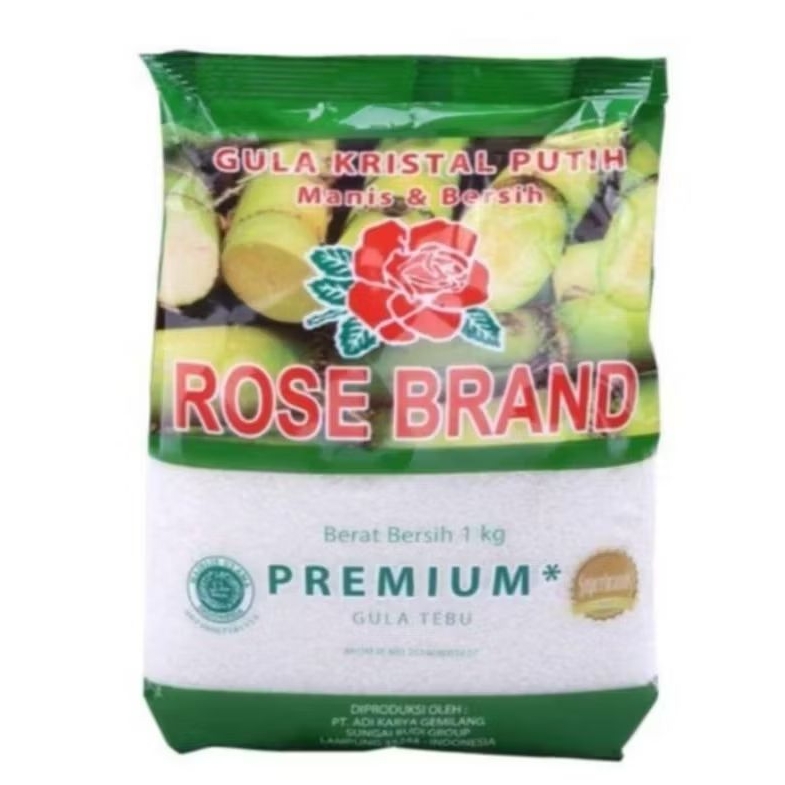 Gula pasir Rose brand kemasan 1 KG . Terbuat dari Tebu alami .