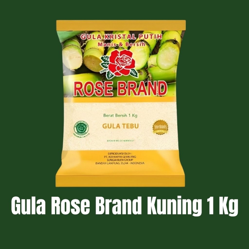 Gula pasir rose brand (gula tebu) kemasan kuning 1kg. Original dan masa expired panjang.