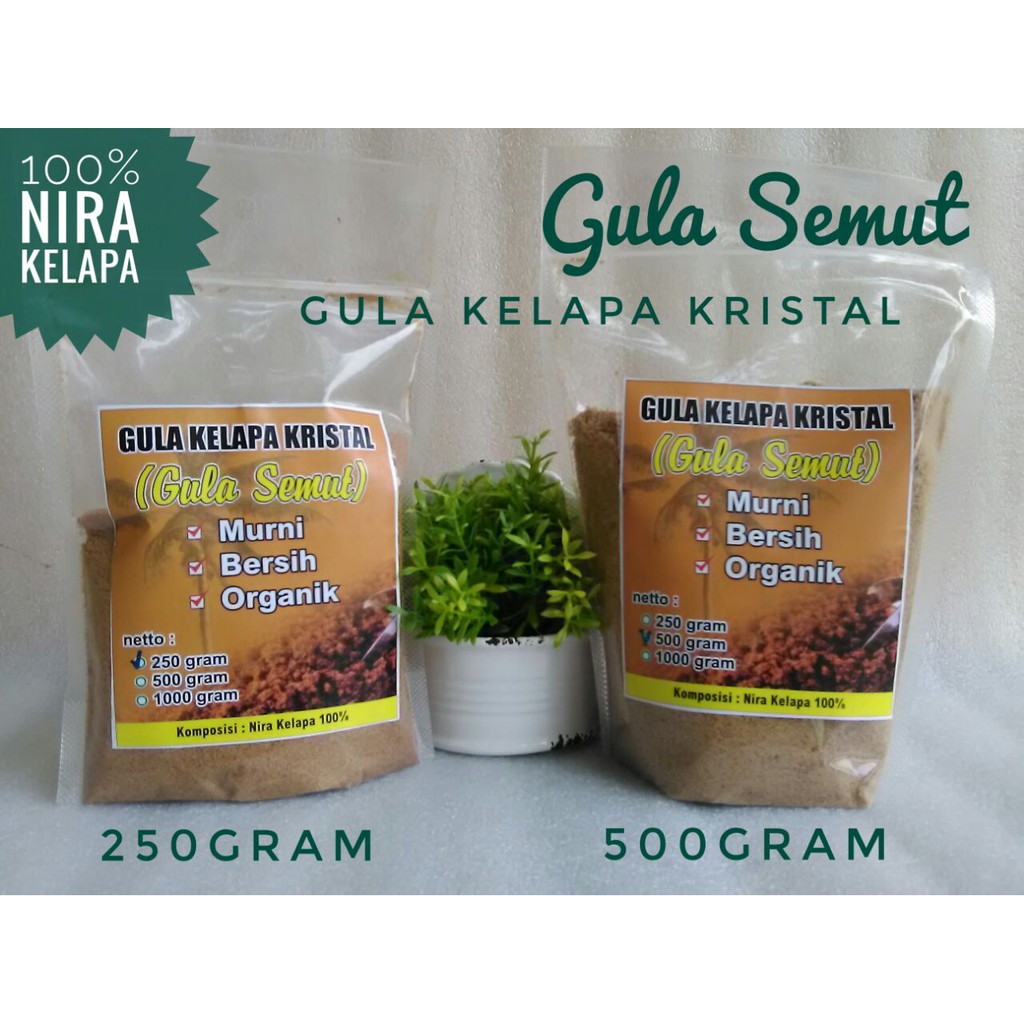 Gula semut adalah gula dari nira kelapa asli. Bentuknya seperti gula pasir, tapi rasanya lebih legit dan alami. Cocok untuk membuat aneka minuman, masakan, bahkan kue. Sebagai pengganti gula pasir untuk hidup yang lebih sehat.