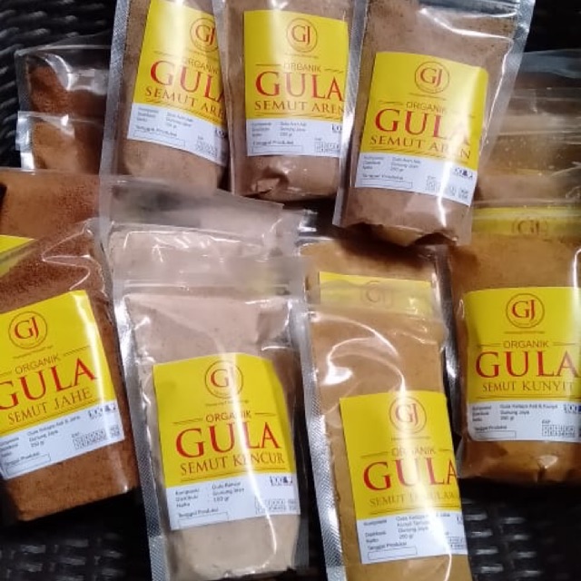 Gula semut berbagai macam varian rasa,dengan cuaca yang kurang mendukung gula ini bisa menjadi jawaban untuk kehangatan yang kalian cari,gula semut ini bisa kalian seduh langsung ataupun ditambahkan kedalam minuman seperti kopi atau teh sesuai selera,gula semut ini hanya mempunya ukuran 250gram perkemesannya
