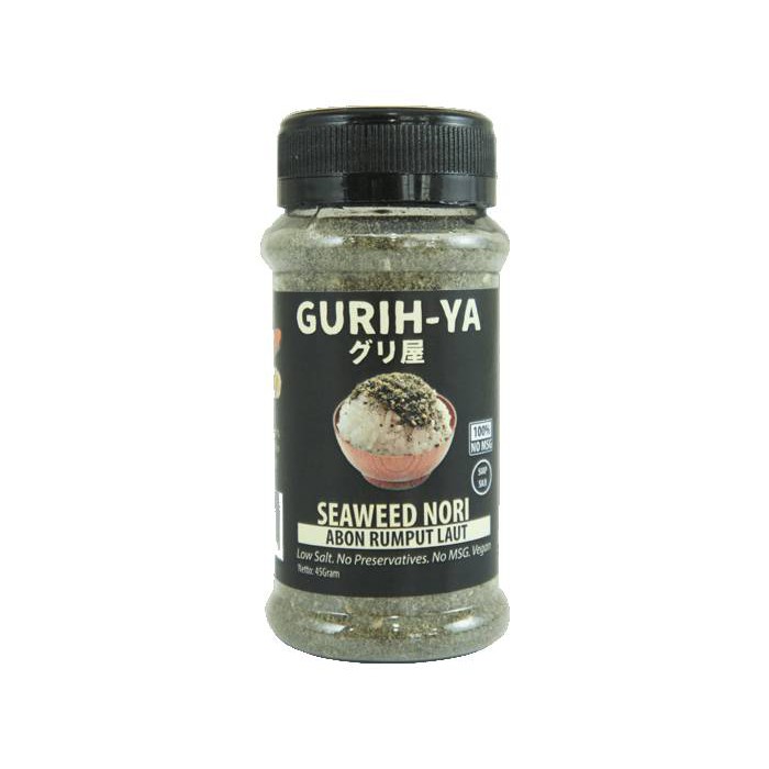 Abon Rumput Laut Original (Original Seaweed Seasoning) dari Gurih-Ya merupakan varian bumbu tabur nikmat dan sehat berbahan dasar rumput laut. Abon rumput laut ini menyajikan rasa rumpur laut alami yang khas tanpa tambahan MSG, tanpa pengawet, perasa, dan pewarna buatan, serta rendah sodium. Segera perkaya rasa makanan Anda dengan Gurih-Ya Abon Rumput Laut Original!