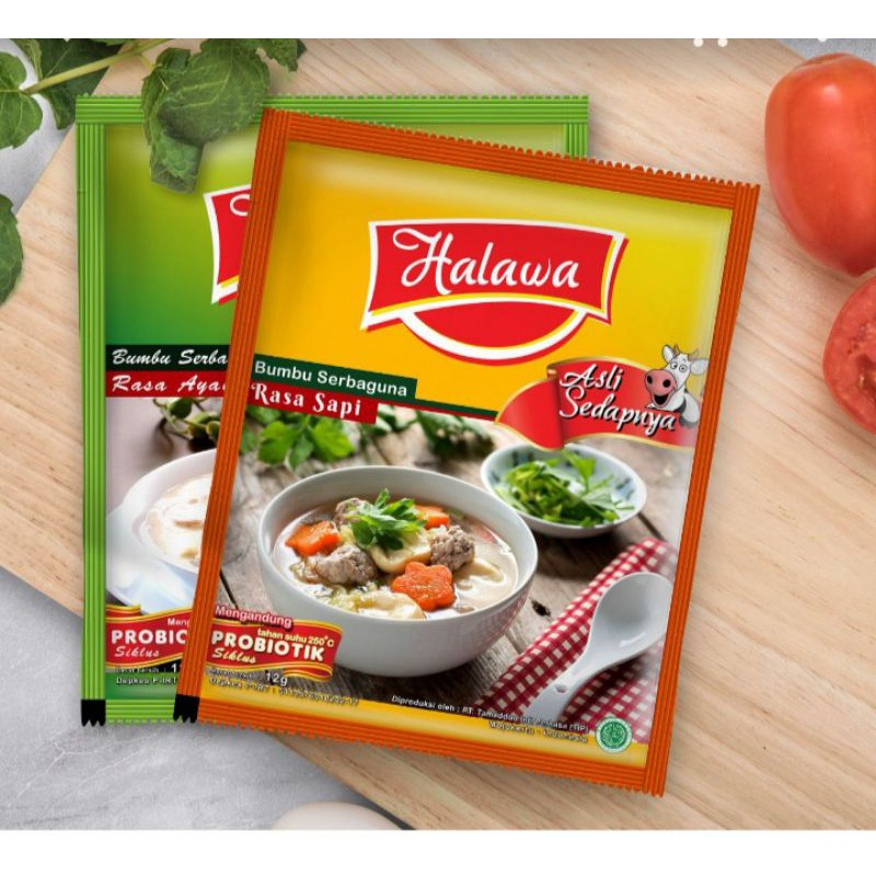 HALAWA 1 RENTENG 12 sachet | HALAWA BUMBU MASAK Organik plus Probiotik - Halawa Kaldu Penyedap Rasa Non MSG Rasa Sapi Probiotik Pro Biotik Ayam dan Jamur