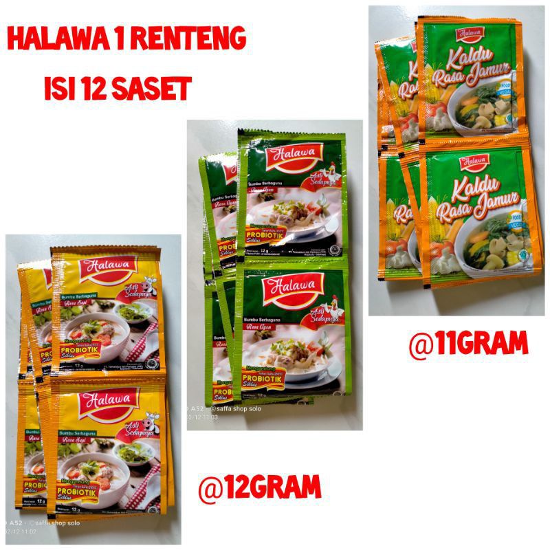 HALAWA SACHET 1 RENTENG (12PCS) 1 RENCENG BUMBU HERBAL PROBIOTIK PENYEDAP RASA SAPI JAMUR AYAM HALAL