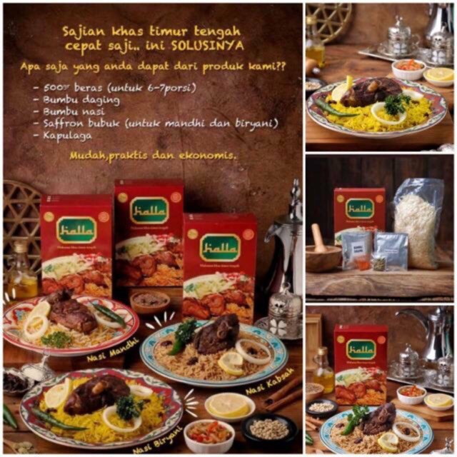 Halla adalah Produk makanan instan dgn 4 Varian, Mandhi, Biryani, Kabsah dan Kebuli.