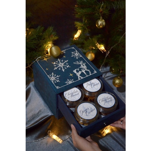 Packed in Forene exclusive holiday edition 2 tiered suede drawer box (22x22x17 cm) with greeting card